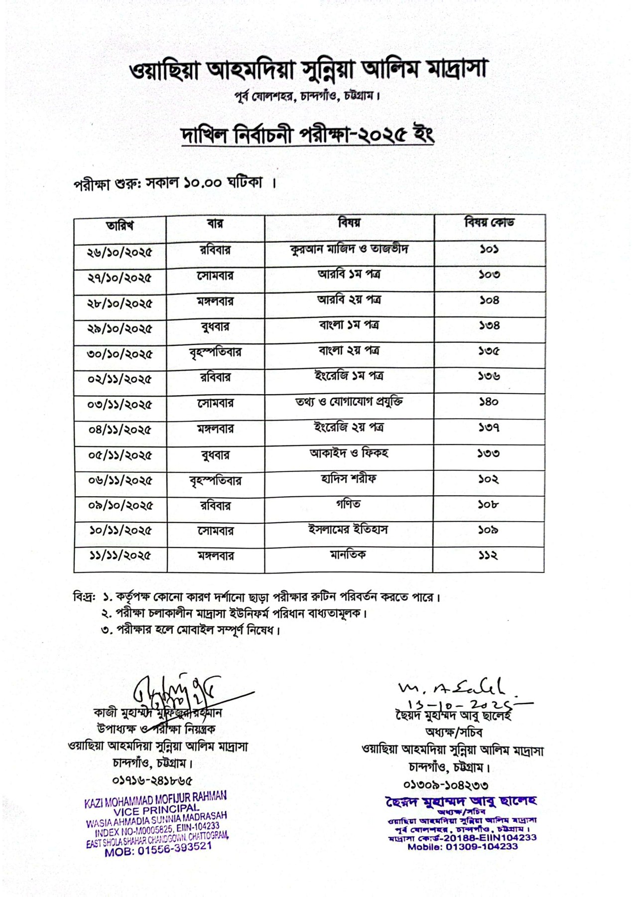 14.Oct.2025 দাখিল নির্বাচনী পরীক্ষার সময়সূচি ২০২৫ View Download